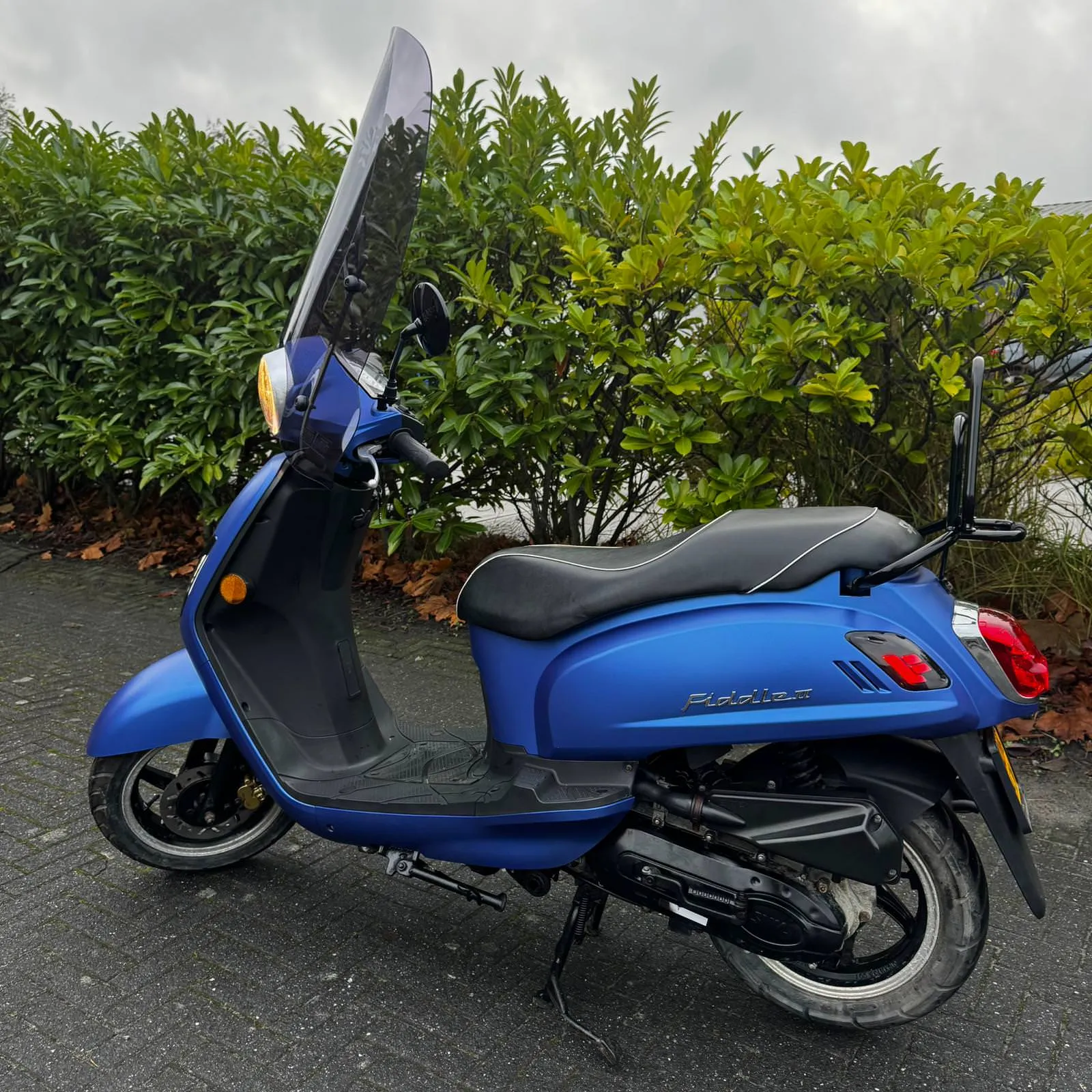 Deze Fiddle2 uit 2020 is uitgevoerd in de populaire kleur matte blauw en verkeert in nette staat. De scooter heeft slechts 6.500 km gereden en wordt geleverd inclusief: