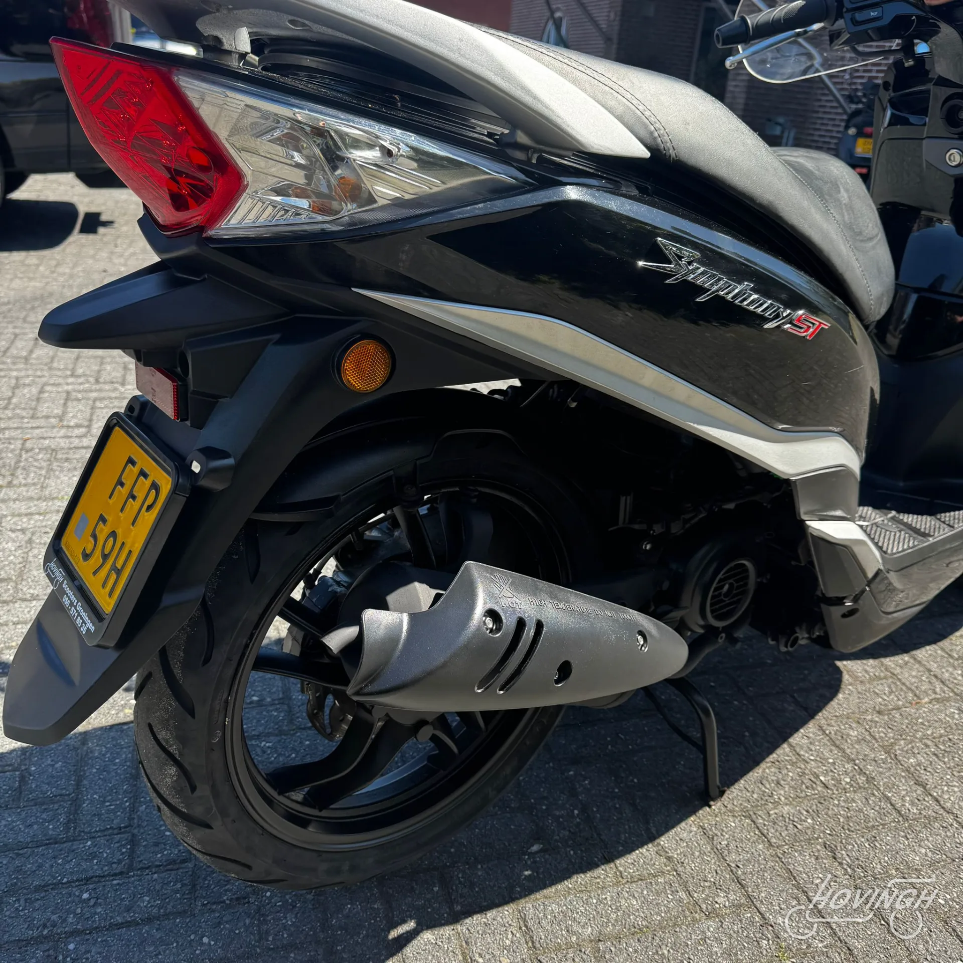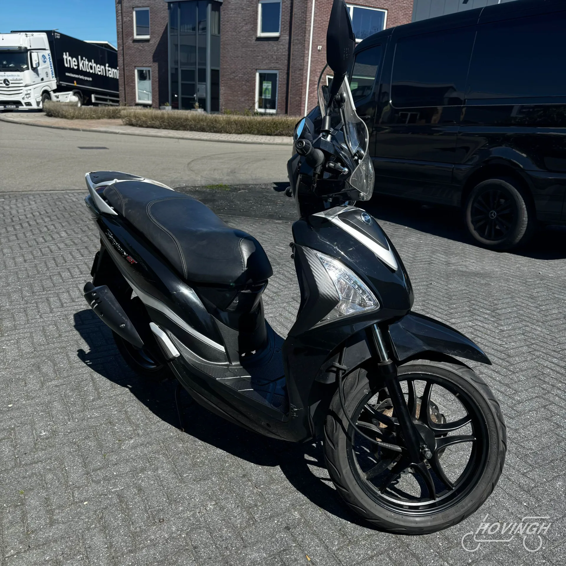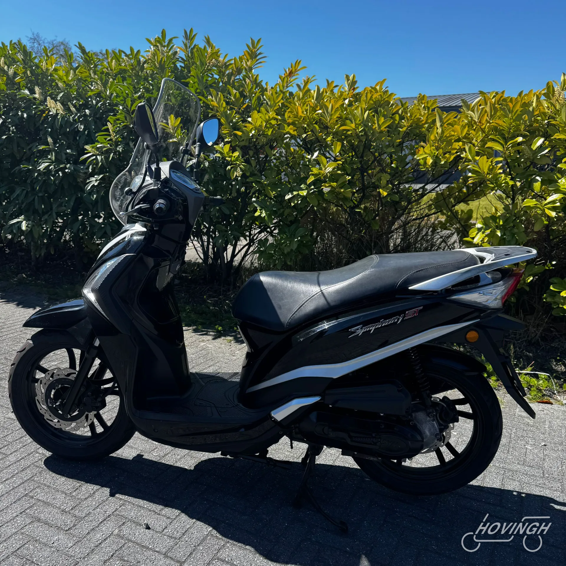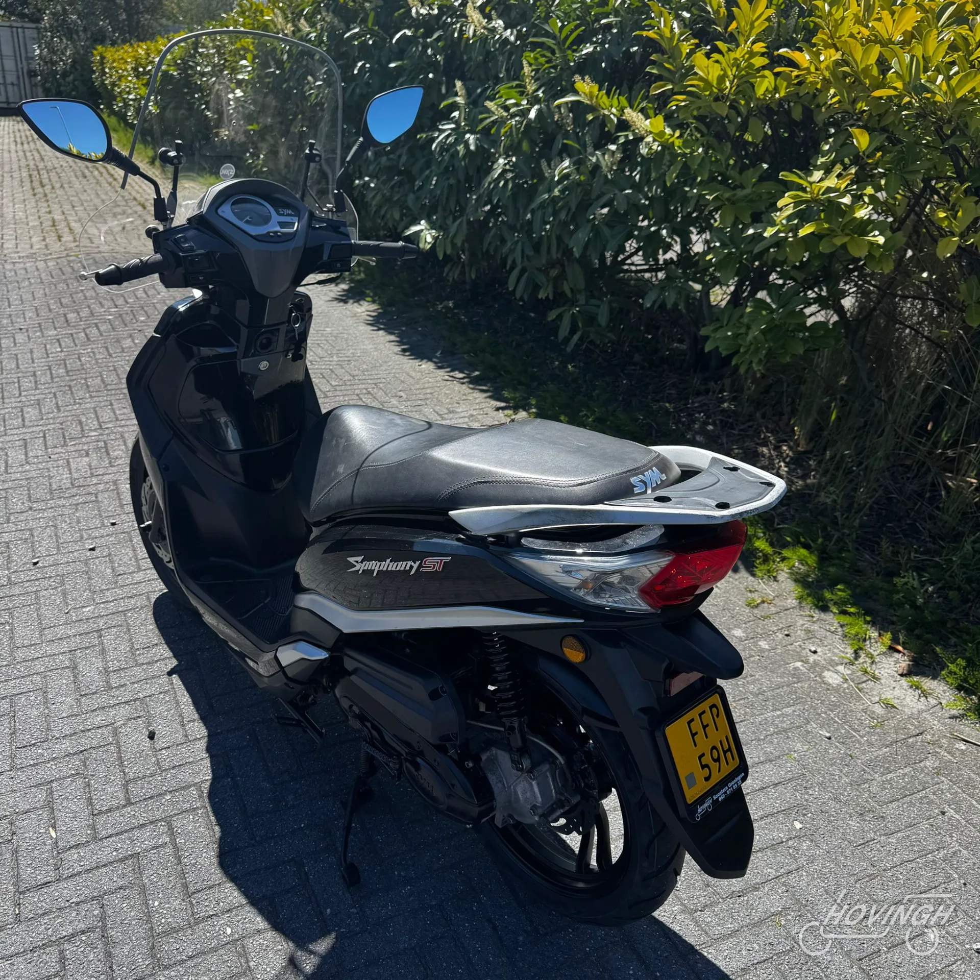 Deze Sym Symphony ST uit 2021 heeft een kilometerstand van 30.000 km en is uitgevoerd in een tijdloze zwarte kleur. De scooter is voorzien van een geel kenteken en geschikt voor gebruik op de rijbaan.